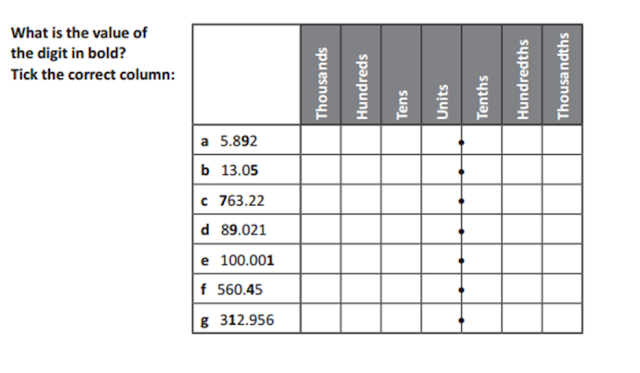Do task one above. Write $287 into your book and then draw the table and come up with 4-6 different ways to make $287. Do it in your books.